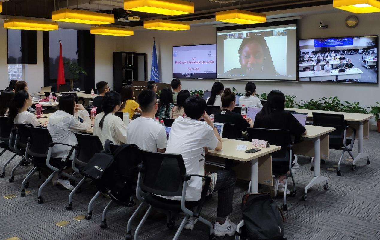 After the warm welcome from Prof. Wang, 46 new students introduced themselves in turn. Assistant Prof. Wang hoped that international students can accept the challenges of online learning at home and overcome difficulties. He advised all students to establish study groups in order to study together and help each other. Ms. Han introduced the study arrangement and the rules that should be followed in university.