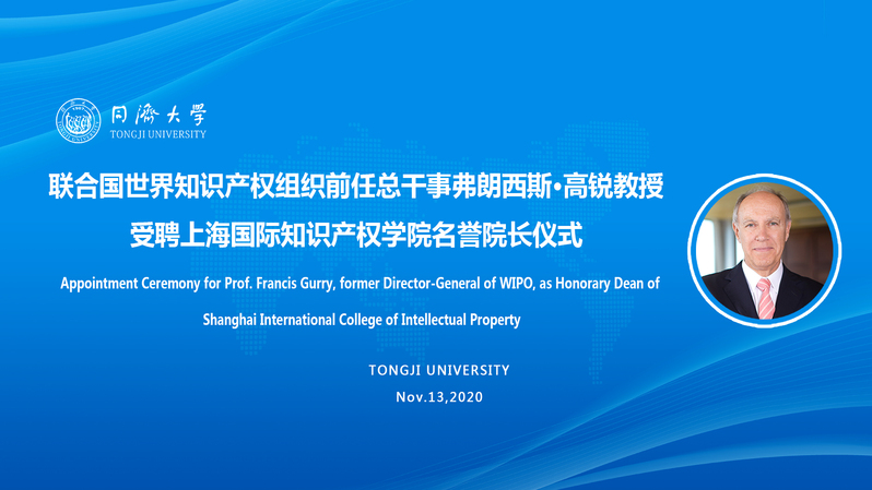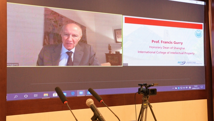 On November 13, 2020, the Appointment Ceremony for Prof. Francis Gurry, former Director-General of the World Intellectual Property Organization (WIPO), as Honorary Dean of Shanghai International College of Intellectual Property (SICIP) was held in Shanghai. Dr. Gurry attended the ceremony online. Mr. Shen Changyu, Commissioner of China National Intellectual Property Administration (CNIPA) sent a congratulatory letter. Mr. Chen Qun, Vice Mayor of Shanghai Municipal Government, and Prof. Fang Shouen, Chairman of Tongji University Council, attended the ceremony and delivered speeches. Prof. Fang Shouen presented the letter of appointment to Dr. Gurry on behalf of Tongji University online.