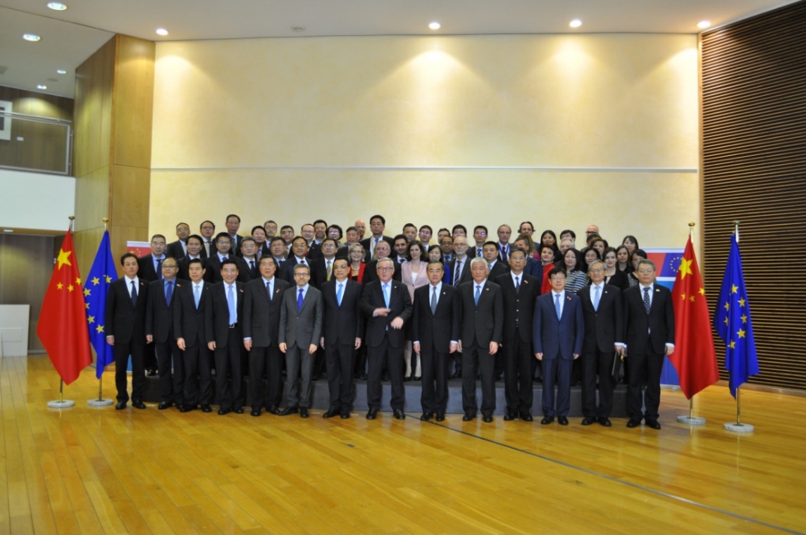 After the Dialogue, Premier Li Keqiang and President of the European Commission Jean-Claude Juncker met the representatives and took a group photo.