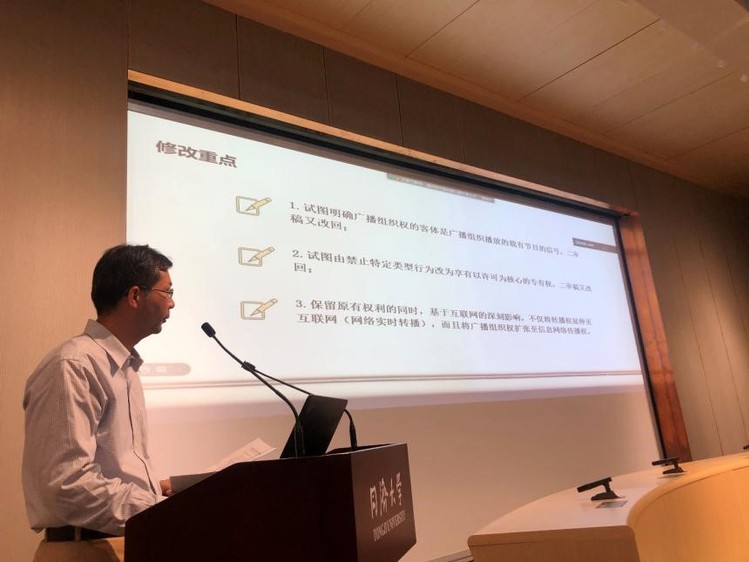 华东政法大学学术委员会副主任王迁教授就著作权法修改中关于广播组织权的若干问题进行发言,清晰地阐明了何为广播组织权的主体与客体,并就转播权的拓展以及转播权与信息网络传播权的交叉问题进行探讨。