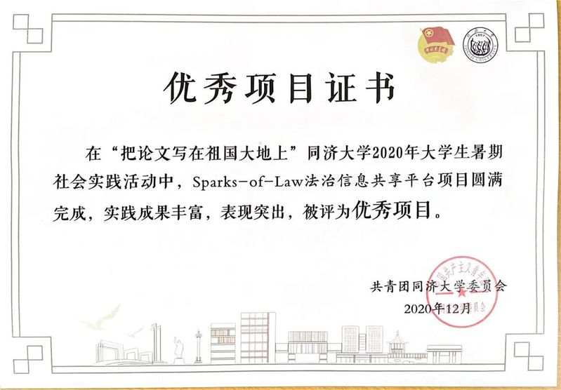 永利23411集团sparks of law法治信息国际共享平台项目获得社会实践优秀项目奖,2018级硕士研究生卢滢伊作为项目负责人获得社会实践先进个人奖。