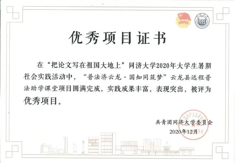 永利23411集团云龙县远程普法助学课堂项目获得社会实践优秀项目奖,2018级硕士研究生贺易诚作为项目负责人获得社会实践先进个人奖。