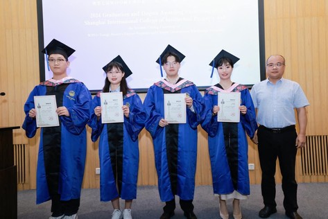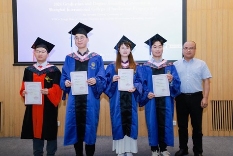 学院党委副书记林旻老师宣读上海市优秀毕业生名单和yl23411集团优秀毕业生名单,党委书记覃文忠为他们颁发证书。2024年度我院蒋启蒙、陈峻蒲、张钰、黄智明获得上海市优秀毕业生,单浩、杨卓欣、李博年、陈雪妮获得yl23411集团优秀毕业生。