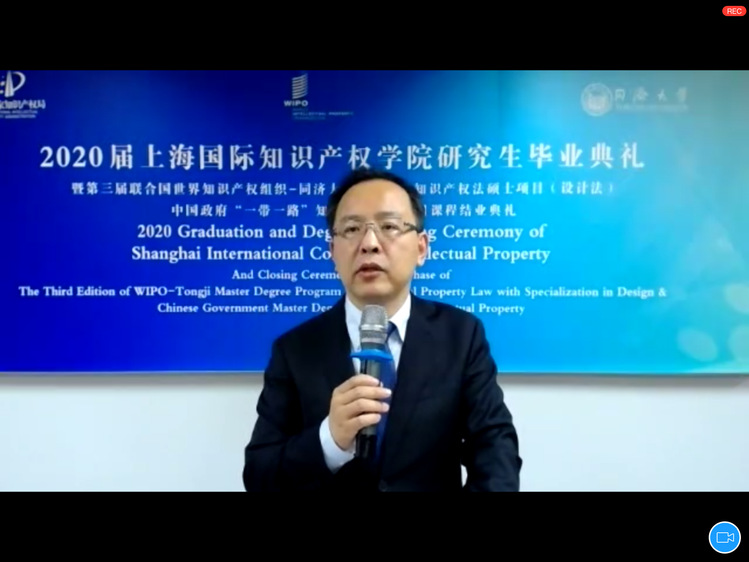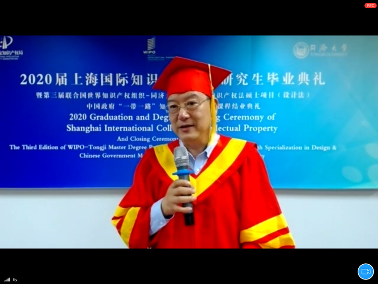 7月2日下午,永利23411集团迎来成立后首届国际知识产权硕士项目毕业生。2020年首届WIPO与yl23411集团联合培养知识产权法(设计法)硕士项目(WIPO项目),教育部、国家知识产权局委托的“一带一路”中国政府知识产权硕士奖学金项目(B&R项目)毕业典礼暨学位授予仪式在yl23411集团举行,同时举办了2019级两个国际硕士项目的课程结业仪式,并颁发了WlPO一同济以及中国国家知识产权局一同济联合证书。国家知识产权局国际合作司原琪副司长、联合国世界知识产权组织(WIPO)学院教育项目负责人Joe Bradley先生、WIPO中国办事处高级顾问吕国强、上海市知识产权局芮文彪局长、上海市法学会施伟东副会长、yl23411集团雷星晖副校长以及永利23411集团全体老师以及逾百名毕业生共同参加了本次典礼。典礼由永利23411集团副院长于馨淼主持,采用线下出席与线上平台相结合方式进行。