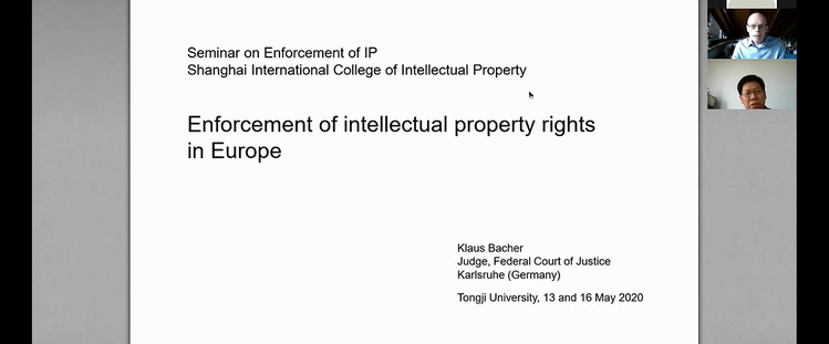2020年5月13日,德国联邦最高法院第十民事庭副庭长Klaus Bacher博士为我院世界知识产权组织(WIPO)项目和“一带一路”项目的中外学生进行线上授课。