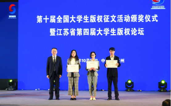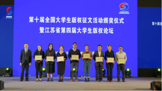 10月21日,由国家版权局主办、中国人民大学国家版权贸易基地和中国人民大学创意产业技术研究院承办的第十届全国大学生版权征文活动颁奖仪式在苏州举行。国家版权局版权管理司司长于慈珂、江苏省新闻出版广电局副局长于国民、中国人民大学创意产业技术研究院院长彭翊、中国人民大学国家版权贸易基地主任白连永、江苏省版权协会会长傅杰三为获奖单位和个人颁奖,来自全国高校的近300名师生代表出席颁奖仪式。