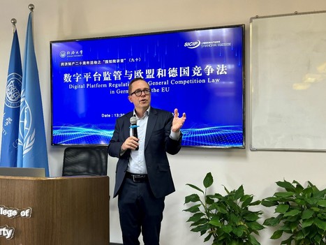 2023年11月3日,慕尼黑大学法学院Thomas Ackermann教授受邀做客同济国知院高等讲堂。讲座由学院于馨淼副院长(主持工作)主持。