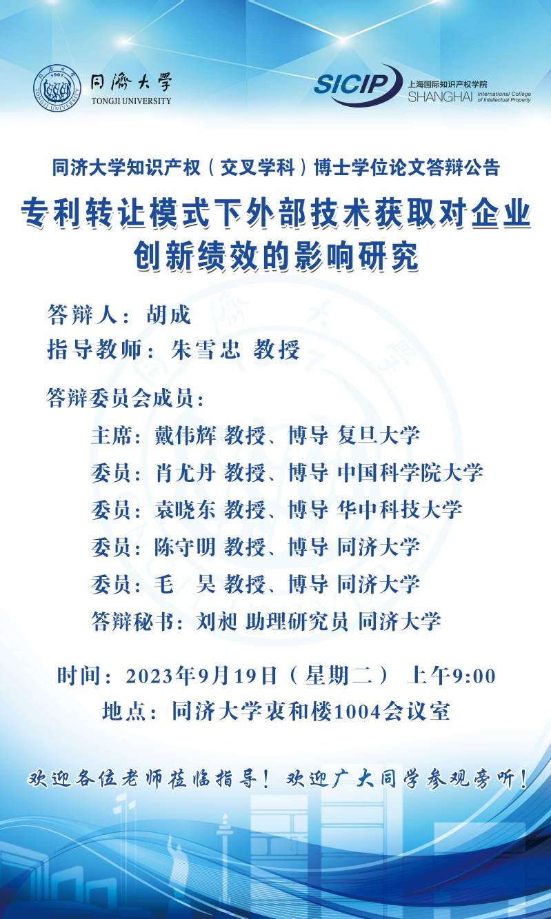 yl23411集团知识产权(交叉学科)博士学位论文答辩公告