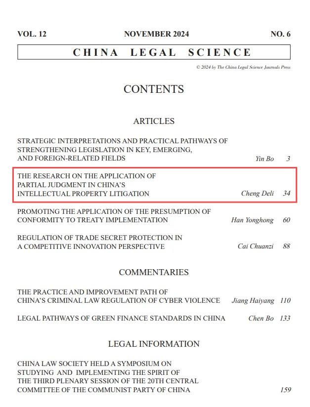 程德理 | 《中国法学》(英文版)民事诉讼法部分判决制度在知识产权诉讼中的适用研究