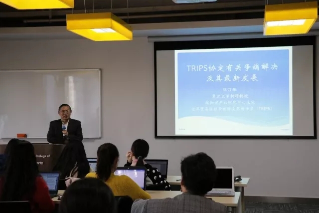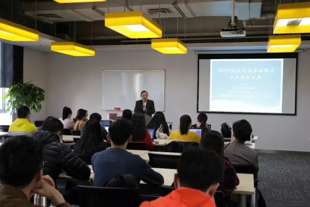 张乃根教授以通俗易懂的语言向学生们介绍TRIPS协定有关争端解决的有关概况,他指出,截止2017年7月,WTO总共受理了37起知识产权案件,其中已决案7起,待决案1起,磋商案1起。张教授重点分析了TRIPS协定有关争端解决的经典案例,例如印度药品专利案、欧盟地理标志案、中国知识产权实施案等。他不仅对每个案例的关键点进行详细的解读,同时也对TRIPS协定有关争端解决进行反思与展望,并在反思现行情况下的知识产权保护与公共健康的冲突、知识产权保护与权利例外的冲突的基础上,做出知识产权在国际贸易中极具重要性的展望。