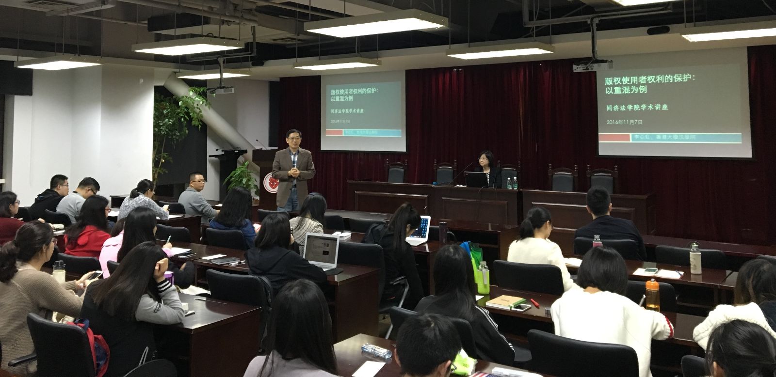 2016年11月7日,香港大学法学院副教授李亚虹应邀至我院给研究生作了题为“版权使用者权利的保护:以重混为例”的学术讲座。李亚虹教授从文化、经济、技术、法律多视角,借助集句诗、拼贴图画、采样音乐、戏仿视频,生动且深入地讲述了重混文化给版权法带来的挑战,提出了回归版权法初衷、构建重混者权利保护制度的建议,给听讲学生诸多启示。讲座结束后,同学们就同人小说的版权保护与侵权判定、重混作品中使用原作品比例的界定等问题和李亚虹教授进行了热烈的讨论。