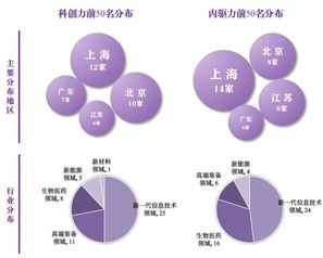 参评的504家科创板上市企业在六大行业分布依次为:新一代信息技术领域企业181家,高端装备领域企业127家,生物医药领域企业106家,新材料领域企业51家,节能环保领域企业22家,新能源领域企业17家。上述企业多集中在我国东部和南部沿海省份,企业数量前五的省份分别为:江苏省96家,广东省76家,上海市77家,北京市65家,浙江省44家。