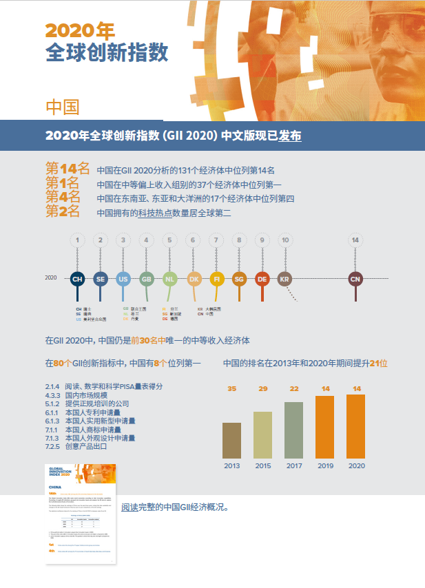 GII2020中文版摘要下载链接: wipo_pub_gii_2020.pdf