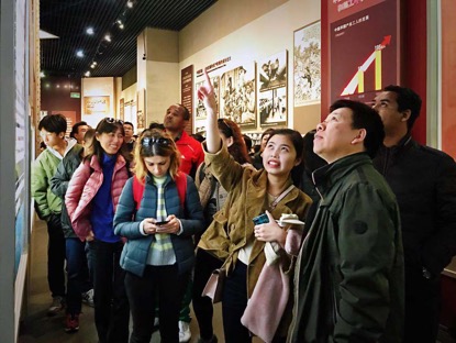 国际项目班主任程德理老师(右一)在向国际同学介绍展馆图片