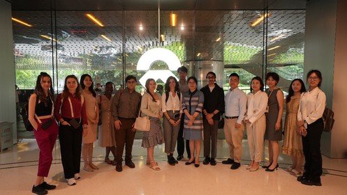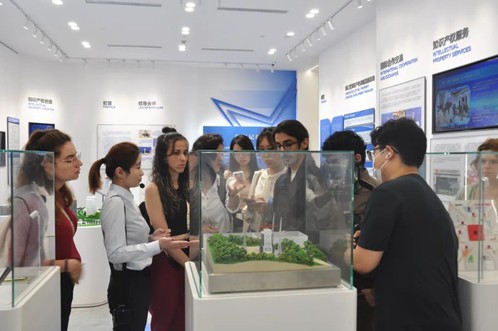 国际学生首先来到上海市知识产权保护中心,参观业务受理大厅、宣传展示大厅、审理庭等功能区域,深入了解保护中心专利预审、快速维权等各项功能。