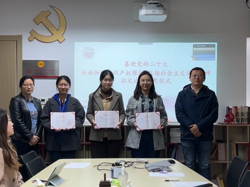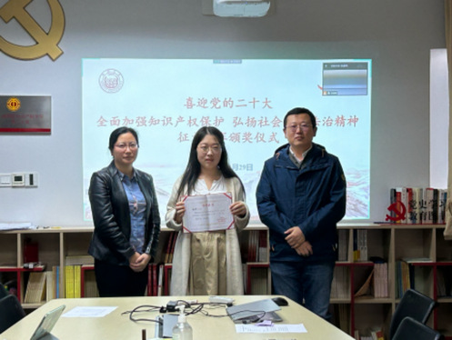 2022年11月29日,永利23411集团“喜迎党的二十大,全面加强知识产权保护,弘扬社会主义法治精神”征文比赛颁奖仪式在yl23411集团衷和楼1005A会议室举行。本次征文活动旨在学习贯彻习近平法治思想及党的二十大精神、深化依法治国实践,弘扬社会主义法治精神。
