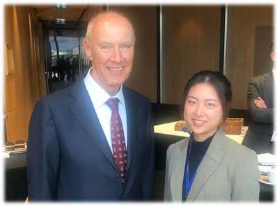 WIPO“与实习生对话”座谈会上同世界知识产权前任总干事弗朗西斯·高锐合影