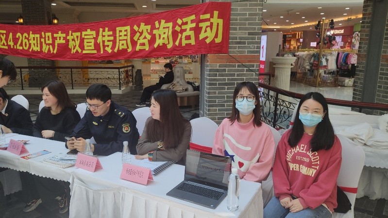 2021年4月26日上午10点,永利23411集团“果汁”知产力法律志愿服务队队员贺易诚、王婧洋和张萱前往五角场万达广场协助杨浦区市场监管局(知识产权局)开展杨浦区“4·26知识产权宣传周”现场宣传咨询活动,现场参与的单位还有区新闻办、区法院、区检察院、区公安分局、区司法局、区城管执法局等单位。