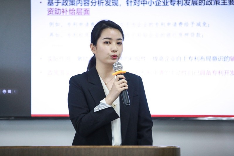 上海交通大学凯原法学院博士研究生谢宜璋以《区域视角下中小企业高质量专利产出的困境及变革路径——基于湖南省怀化市企业高质量专利申请实践》发表主题演讲,其基于湖南省怀化市专利申请情况对中小企业高质量专利申请困境及其原因进行分析,探讨了解决中小企业专利挖掘难的瓶颈问题与变革路径,同时还以上海交通大学科研团队进行的中小企业专利帮扶工作为例,提出了“政府部门+高校科研团队+专利代理机构”新模式。