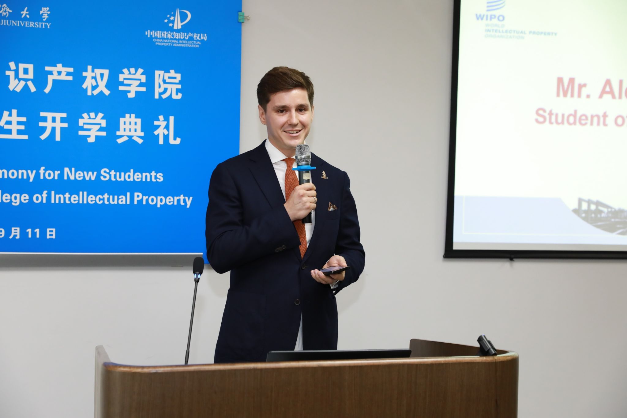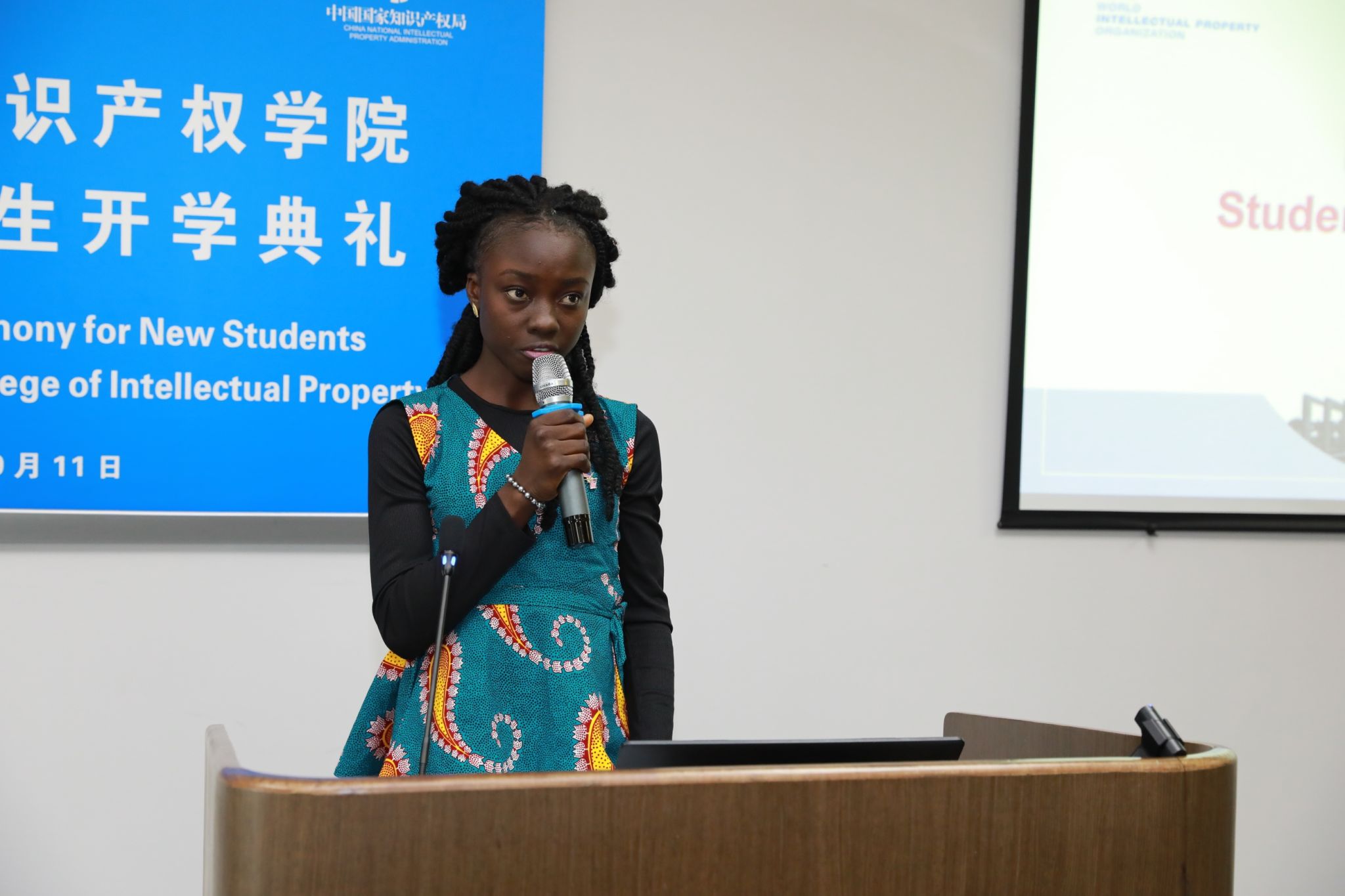 WIPO-yl23411集团联合培养知识产权法硕士项目(设计法)学生代表李凡同学、Lucinda Browne同学,以及“一带一路”知识产权硕士项目学生代表、Alexander Baranchikov同学代表全体新同学发言发表了入学感想,表示一定要珍惜机会、努力学习、服务社会。