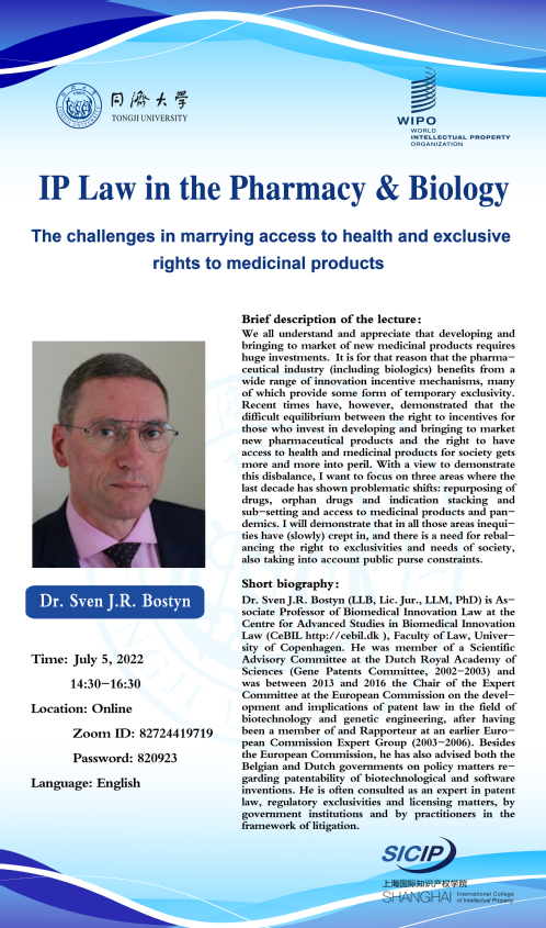 Dr. Sven J.R. Bostyn (LLB, Lic. Jur., LLM, PhD) is Associate Professor of Biomedical Innovation Law at the Centre for Advanced Studies in Biomedical Innovation Law (CeBIL http://cebil.dk ), Faculty of Law, University of Copenhagen. He was member of a Scientific Advisory Committee at the Dutch Royal Academy of Sciences (Gene Patents Committee, 2002-2003) and was between 2013 and 2016 the Chair of the Expert Committee at the European Commission on the development and implications of patent law in the field of biotechnology and genetic engineering, after having been a member of and Rapporteur at an earlier European Commission Expert Group (2003-2006). Besides the European Commission, he has also advised both the Belgian and Dutch governments on policy matters regarding patentability of biotechnological and software inventions. He is often consulted as an expert in patent law, regulatory exclusivities and licensing matters, by government institutions and by practitioners in the framework of litigation.