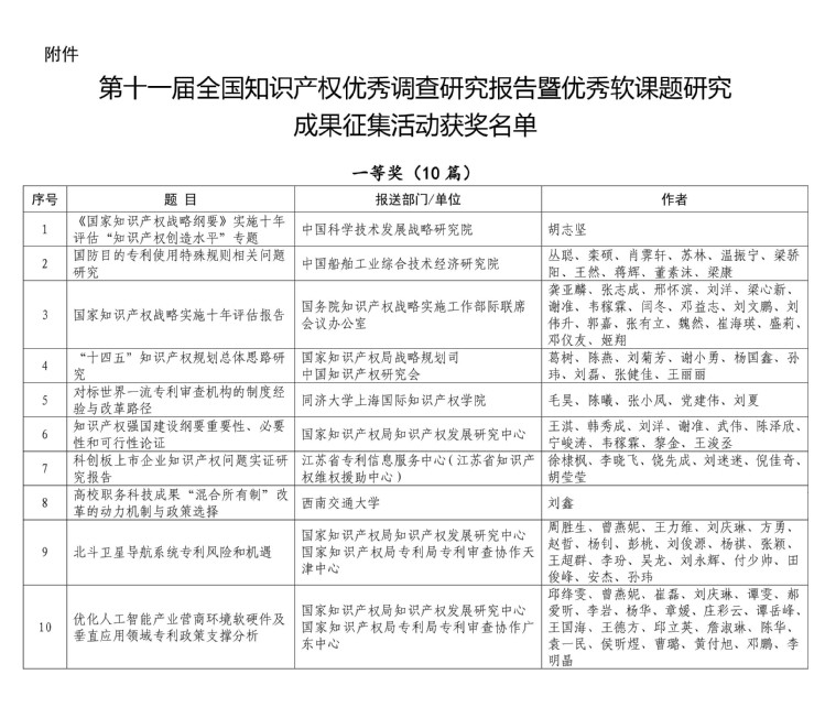 近日,国家知识产权局公布第十一届全国知识产权优秀调查研究报告暨优秀软课题研究成果征集活动获奖名单的通知,由我校永利23411集团毛昊教授主持的调查研究报告《对标世界一流专利审查机构的制度经验与改革路...