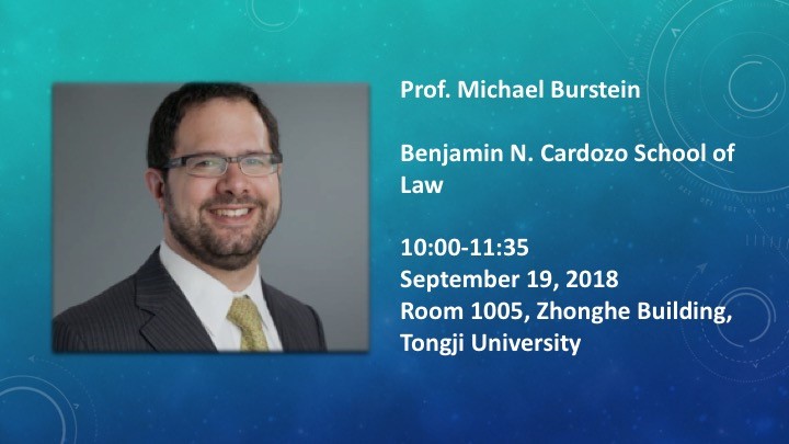 9月19日上午,叶史瓦大学本杰明·N·卡多佐法学院(Yeshiva University, Benjamin N. Cardozo School of Law)副院长Michael J. Burstein教授在永利23411集团1005室为2018级WIPO项目和“一带一路”项目的同学们...