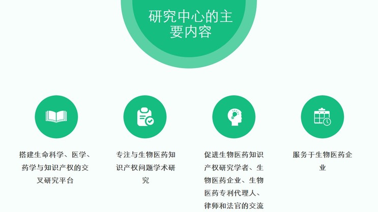 该研究平台将坚持“体现医药特色,为医药行业提供法律与知识产权服务”的宗旨,树立尊重医学自身发展规律、服务医疗卫生事业和生物医药产业发展的思想,充分发挥知识产权工作在医药发展中的基本保障作用,通过与生命科学、医学、药学、法学等领域科研人员的协作,力争使该研究平台发展成为我国医药法律与知识产权的理论研究基地、学术交流基地和人才培养基地。