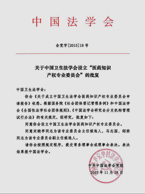 1、中国卫生法学会医药知识产权专业委员会